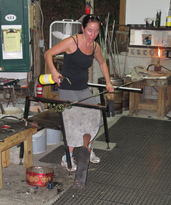 moved to an on-going glass-blowing demonstration. The young woman and her