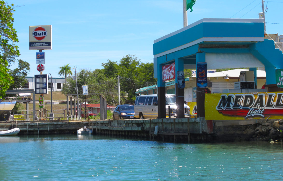 One of Dewey's few gas stations and where Barb filled up the gas in the dinghy