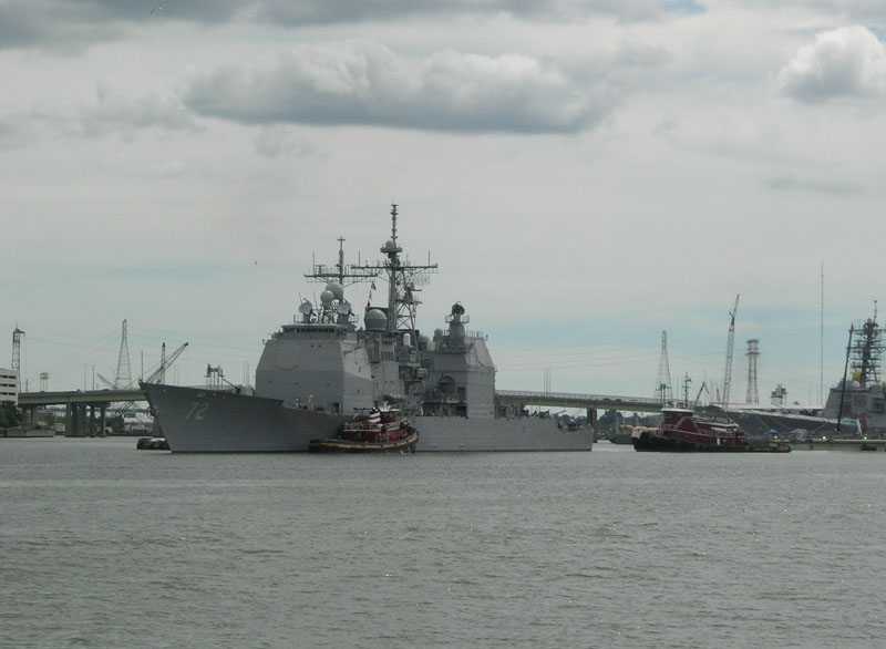 Nevertheless, we arrived in Norfolk, VA in the early afternoon. Very crowded waterways here. Lots of tugs. Sailboats whizzing about. Tour boats. And yet, right on the edge of all of this madness is a well-known anchorage, just off the naval hospital in Norfolk. We circled like a female dog preparing to settle into her favorite rug, and then dropped anchor. Downtown Norfolk is impressive. We visited the Nautica Museum which grants free admission to the Naval Museum and the Iowa class battleship “Wisconsin” Quite a piece of machinery. Was she ever worth her cost? I suspect the answer to that question would depend in large part on who you voted for in the last two elections. J