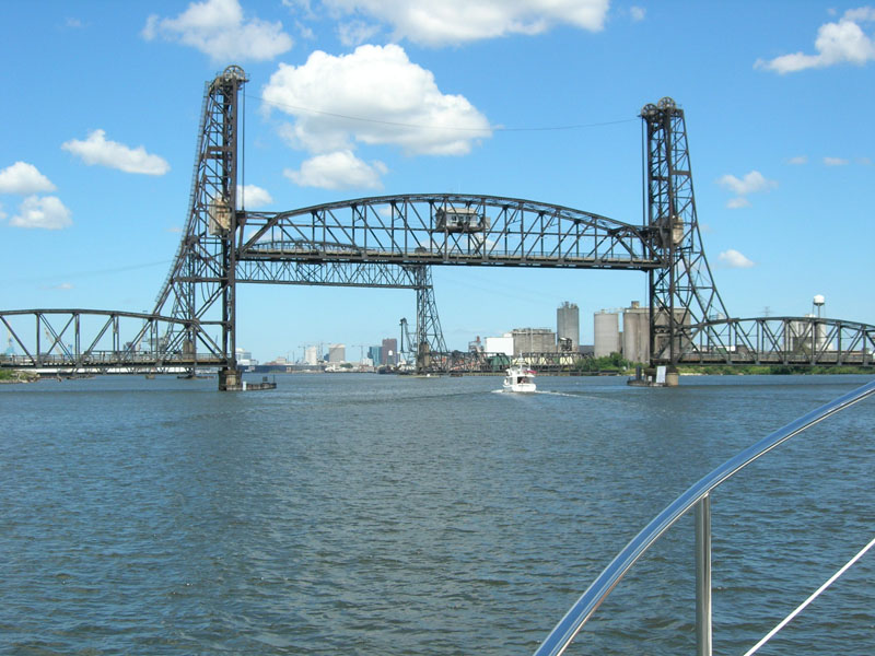 The Great Bridge Bridge only opens on the hour, so we timed our departure the next morning (8/25) accordingly. The bridge is just downstream from a lock that equalizes tidal differences between the canal running south and the Chesapeake Bay, so we had no sooner passed under the bridge and we entered the lock. The name of the lock? “Great Bridge Lock”, of course. After passing through the locks the scenery became increasingly “industrialized”. Lots of shipyards along the shore, etc. And lots of bridges with very restrictive openings, so we made very very slow progress up the ICW.