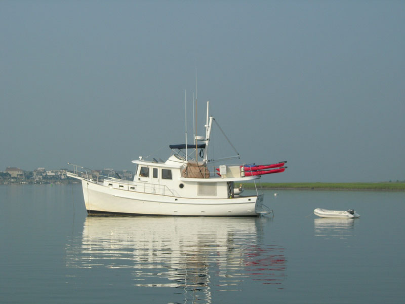 Jack had decided to get his Nitrox certification so we headed back to Beaufort so he could attend his class, and he and Chuck could go on another dive. Beaufort has some nice anchorages, but the one next to the downtown was too crowded so we anchored in Town Creek near the dive shop. This time the guys could dinghy over to the dive boat and we girls could sleep in. They had a much better dives on this trip and incredibly saw both a large frogfish and a lionfish (a Pacific species that has recently begun appearing along the Atlantic coast). Jo and I dinghied over to the the downtown area and spent the day checking out Beaufort and finding a great restaurant for lunch. We discovered that the NC Maritime Museum in Beaufort has three loaner cars for mariners, so we borrowed one to take a trip to West Marine for a new horn for TT II and to run some other errands. We picked up our mail again in Beaufort and got a number of Netflix movies. We had the Binckerhoff's over for a Friday night dinner and to see "Million Dollar Baby". Great movie but pretty sad. We are going to spend this morning (August 6th) going through the Maritime Museum now that the guys have some free time. We plan to weigh anchor this afternoon and head for Oriental, NC. We will either stay there for a few days, head up the Neuse River to New Bern or head east to Ocracoke. I guess we'll decide on which direction we go when we get there. Sunday, August 7th, is our 23rd wedding anniversary, so my goal is for us to find an excellent restaurant for our anniversary dinner celebration.