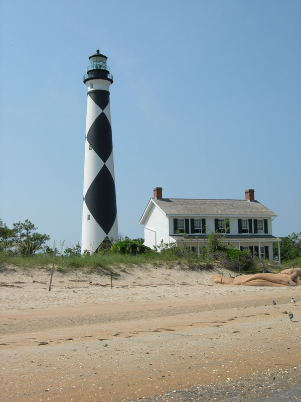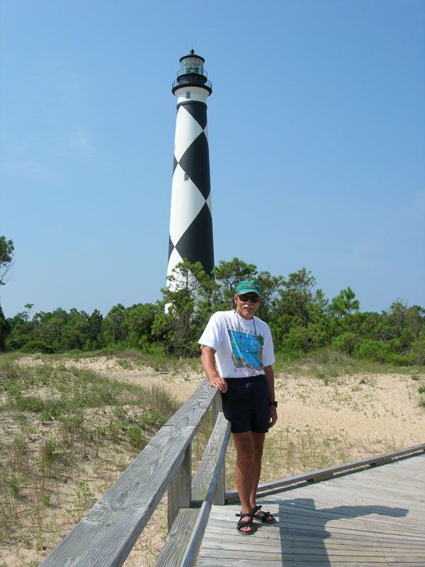 The lighthouse on Cape Lookout has a unique black and white diamond pattern that helps you determine your direction. If you look squarely at a white diamond, you are looking north or south, and the black diamonds are east or west. I may have that backwards but you get the general idea . Chuck took the lighthouse tour, he ran on the beach, and we toured the area on foot and by dinghy. There are 144 wild horses on nearby Shackleford Banks. We tried to spot some of them by cruising by on the dinghy but missed them. Jack and Jo went searching by foot and saw a number of them.