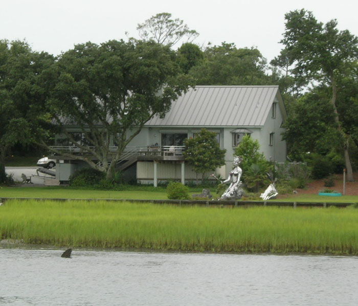 I was sort of glad we did as we saw some interesting sights along the way like a fake palm tree and parking meter on a little spit of sand in the middle of the ICW. Also saw a goddess in a back yard as well as a giraffe in another. Very strange, but I guess we often see strange things along the roadside when driving too.