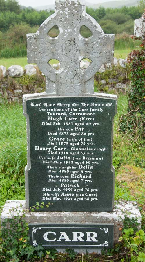 | | | | | | | | | 4 Richard Carr b: estimated 1805 in Ireland m: d: |