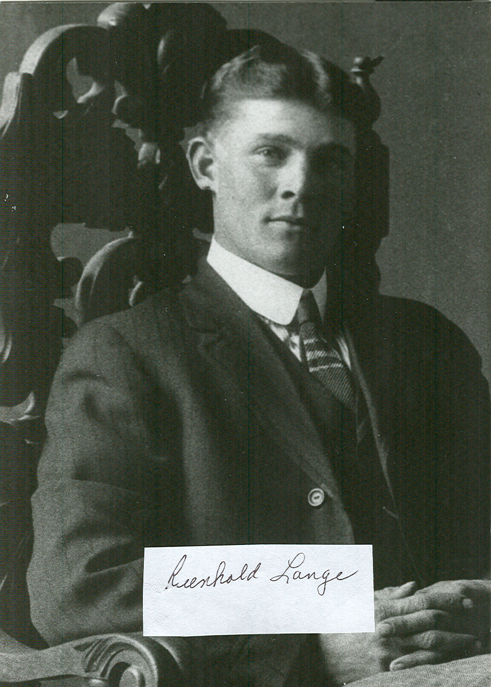 12. Reinhold Lange was born on 24 March 1893 in Zhitomir, Volhynia, Russia. He immigrated in May 1913 to Baltimore, MD at on the ship Cassel from Bremen, Germany. He was buried in May 1981. Reinhold died of a stroke on 18 May 1981 at the age of 88 in Carrington, ND. He had Social Security Number 501-40-5212. Reinhold Lange and Othelia Amanda "Tillie" Hoffman were married on 11 December 1917. Othelia Amanda "Tillie" Hoffman, daughter of Gustav Hoffman and Juliana Missal, was born on 10 January 1897 in Chodetz, Poland. She died of blood poisoning from a sore on her face in August 1923 at the age of 26. Reinhold Lange and Othelia Amanda "Tillie" Hoffman had the following children: +34 | i. | Herbert Theodore "Herb" Lange. | 35 | ii. | Hugh William Lange was born on 26 April 1920. He was naturalized on 18 May 1926 in Carrington, ND. He served in the military U.S. Navy in WW II in 1942–44. Hugh died on 12 April 1992 at the age of 71 in Carrington, ND. | +36 | iii. | Reinhart Albert Lange. | 37 | iv. | Rudolph John Lange was born in May 1923 in Carrington, ND. He died Pneumonia in June 1923 at the age of 0. |